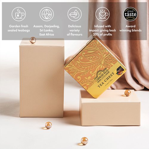Tea Chest Four holds a quartet of teas in an exquisite gold caddy that will be treasured long after the last infusion. Contains a selection of English Breakfast, Earl Grey, Darjeeling and English Tea No 1 teabags. Tea bags with strings, individually foil wrapped, allow preserving the tea flavour and aroma.Brewing should take approximately 3-5 minutes.